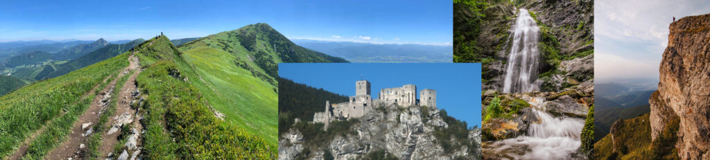 Felvidék – K’lek-csúcs (Orr-kő), Sútói-vízesés (a Felvidék egyik legmagasabb vízesése, 38 méter magas) – Nagy-Kriván (1709 m), Vág-kanyarulat – Sztrecsno varázslatos várromja és hegyei